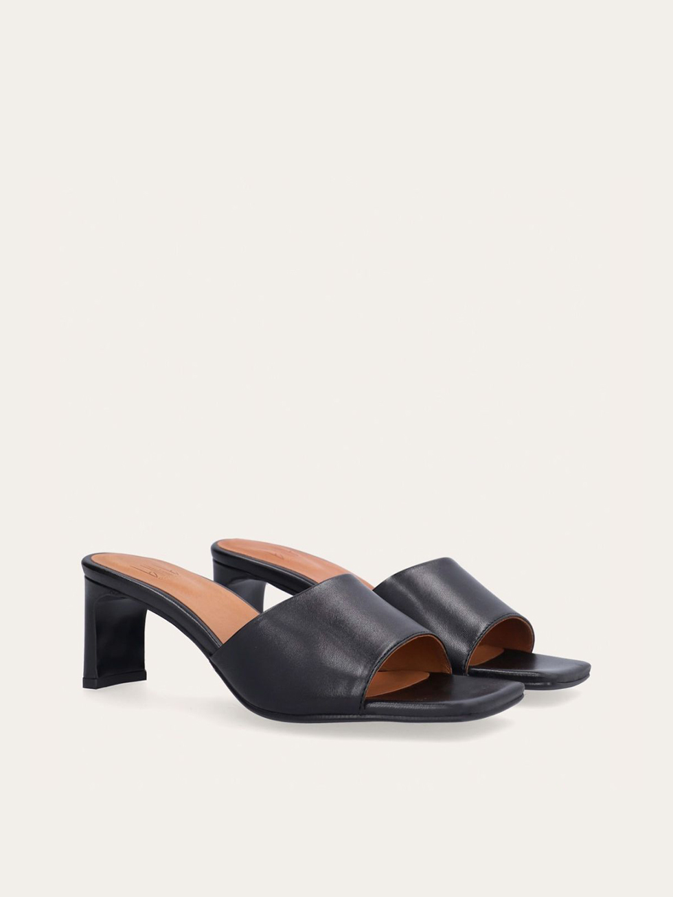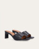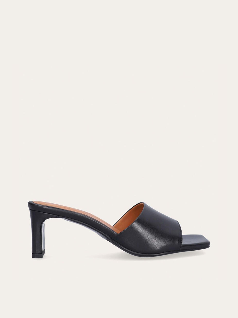 Handcrafted sandal with heel, crafted in black smooth leather with a square toe.