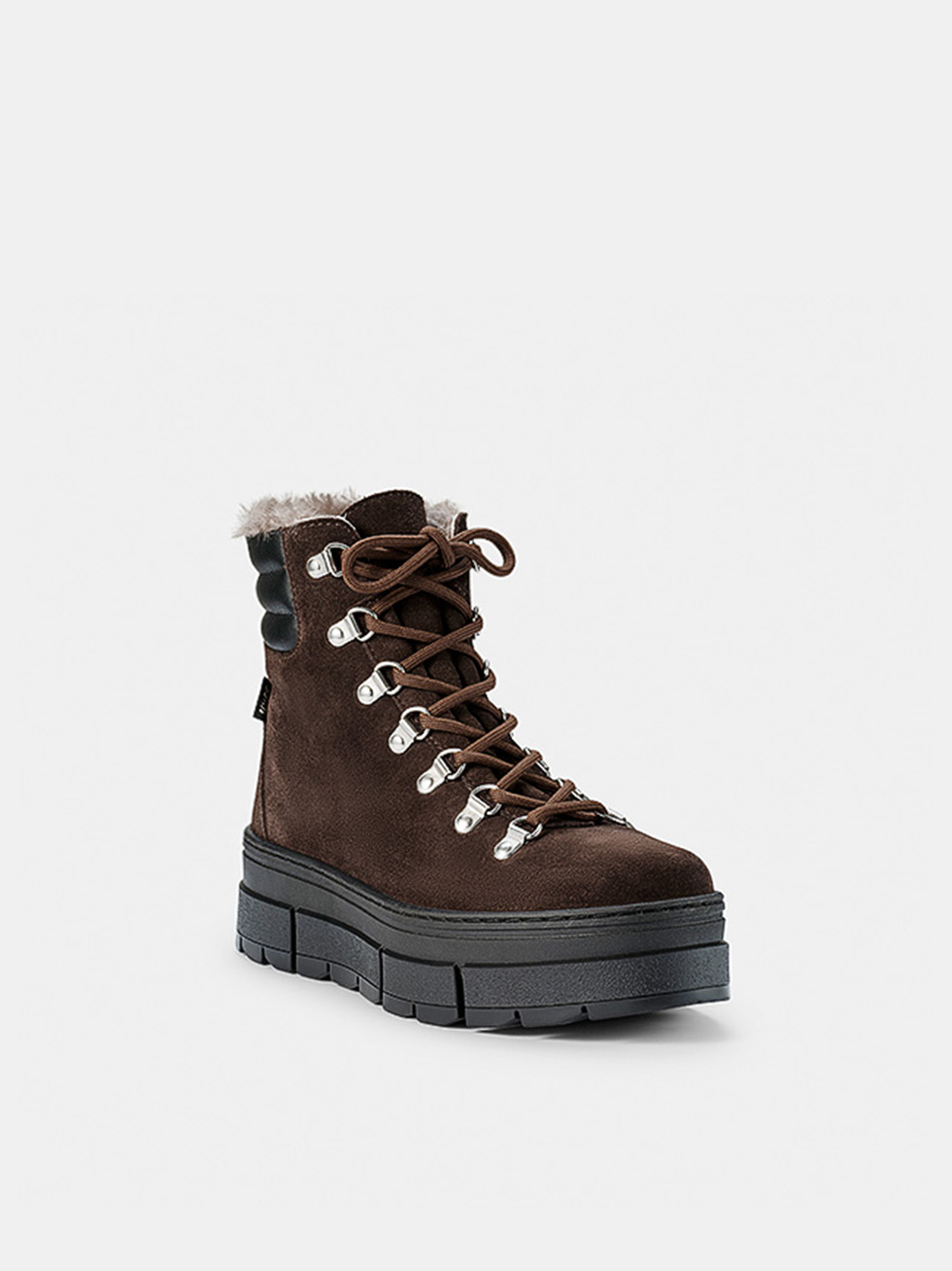 Ilves Rutna is a comfortable studded boot, designed to withstand the Scandinavian climate with ice, snow, and slippery conditions. Made of suede, it features a removable insole and is warmly lined with soft sheepskin. The outsole has a trendy, structured design, and the smooth eyelet lacing makes it easy to adjust the fit.
