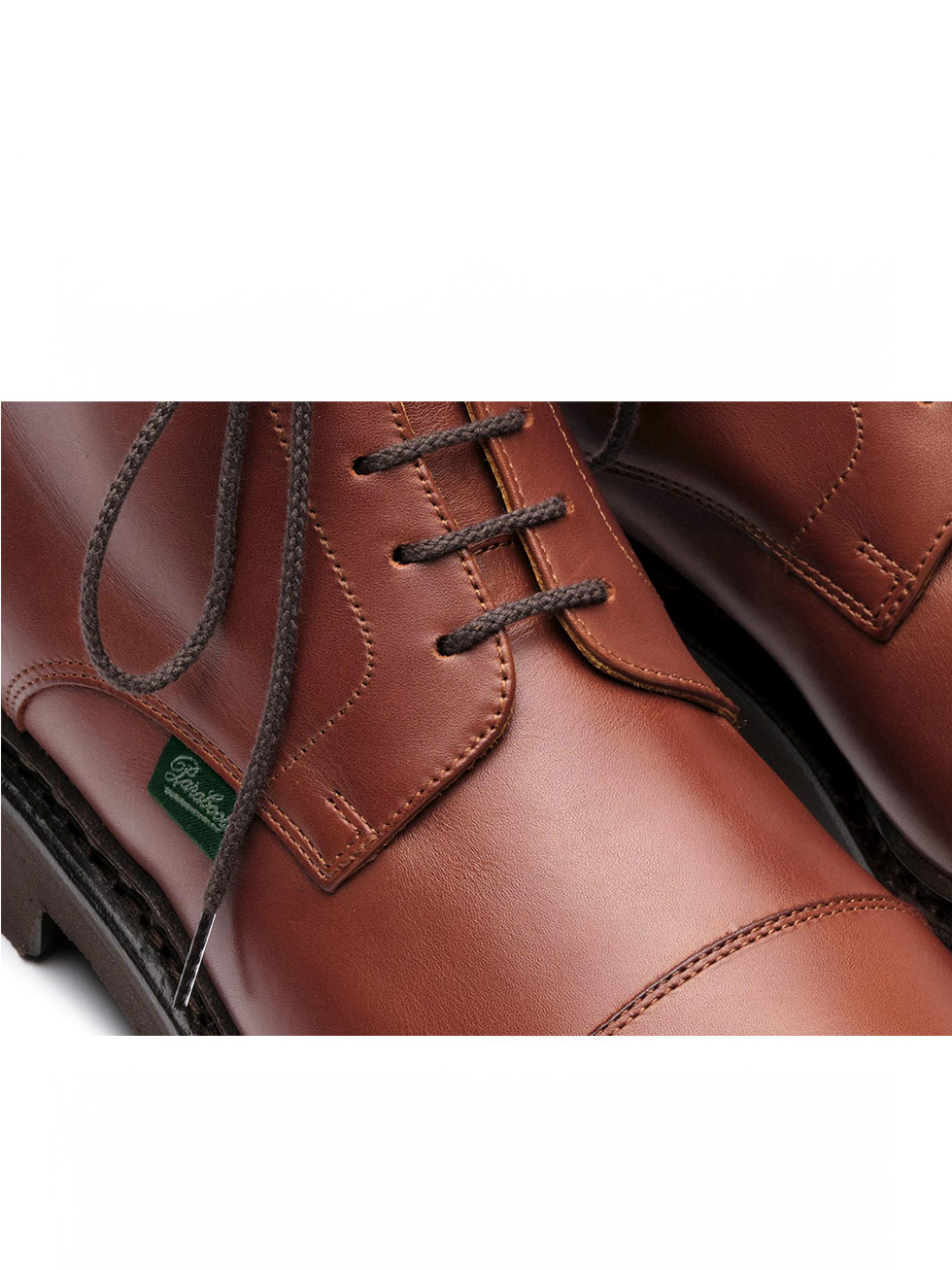 Crafted in France with Paraboot’s signature Norwegian welt construction, this shoe reflects timeless craftsmanship and everyday performance. The traditional last with an almond-shaped toe offers a refined silhouette, while the full leather lining ensures lasting comfort. Finished with a natural rubber sole, it delivers resilience, flexibility, and complete waterproofing. A true balance of elegance, strength, and heritage.